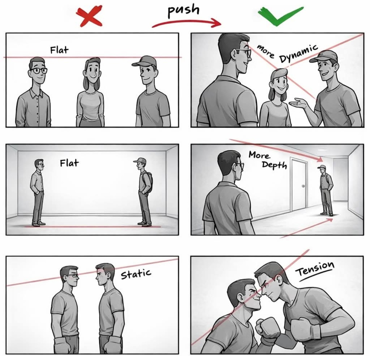 ✅ ادفع الكادر ليصبح أعمق، أكثر ديناميكية، وأكثر توترًا دراميًا
