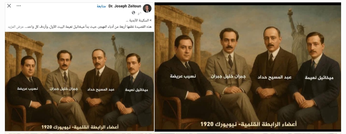 هذه القصيدة نظمها أربعة من أدباء المهجر، حيث بدأ ميخائيل نعيمة البيت الأول، وأردف كل واحد البيت ببيت من عنده بالتتالي على ذات الوزن والقافية :