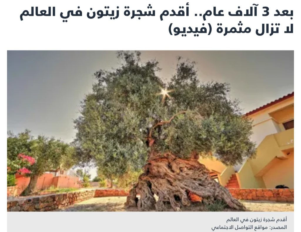 أقدم شجرة الزيتون حية على وجه الأرض, عمرها 3 آلاف عام.موجوده في قرية “آنو فوڤيس” على جزيرة كريت اليونانية .