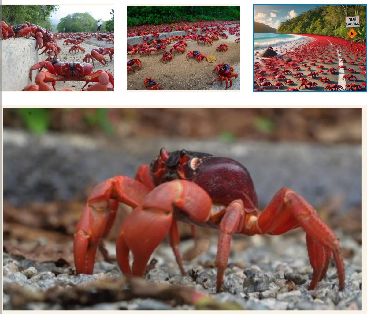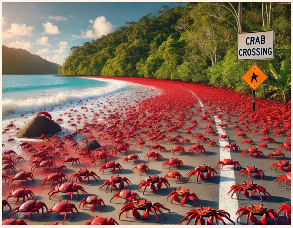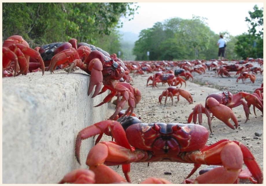 وخلال هذه الفترة، تتحرك أعداد هائلة من السرطانات عبر الجزيرة، ما دفع السلطات المحلية إلى إنشاء بنية تحتية خاصة تشمل جسورا وممرات مخصصة لعبورها، بهدف تقليل حوادث الدهس على الطرقات.