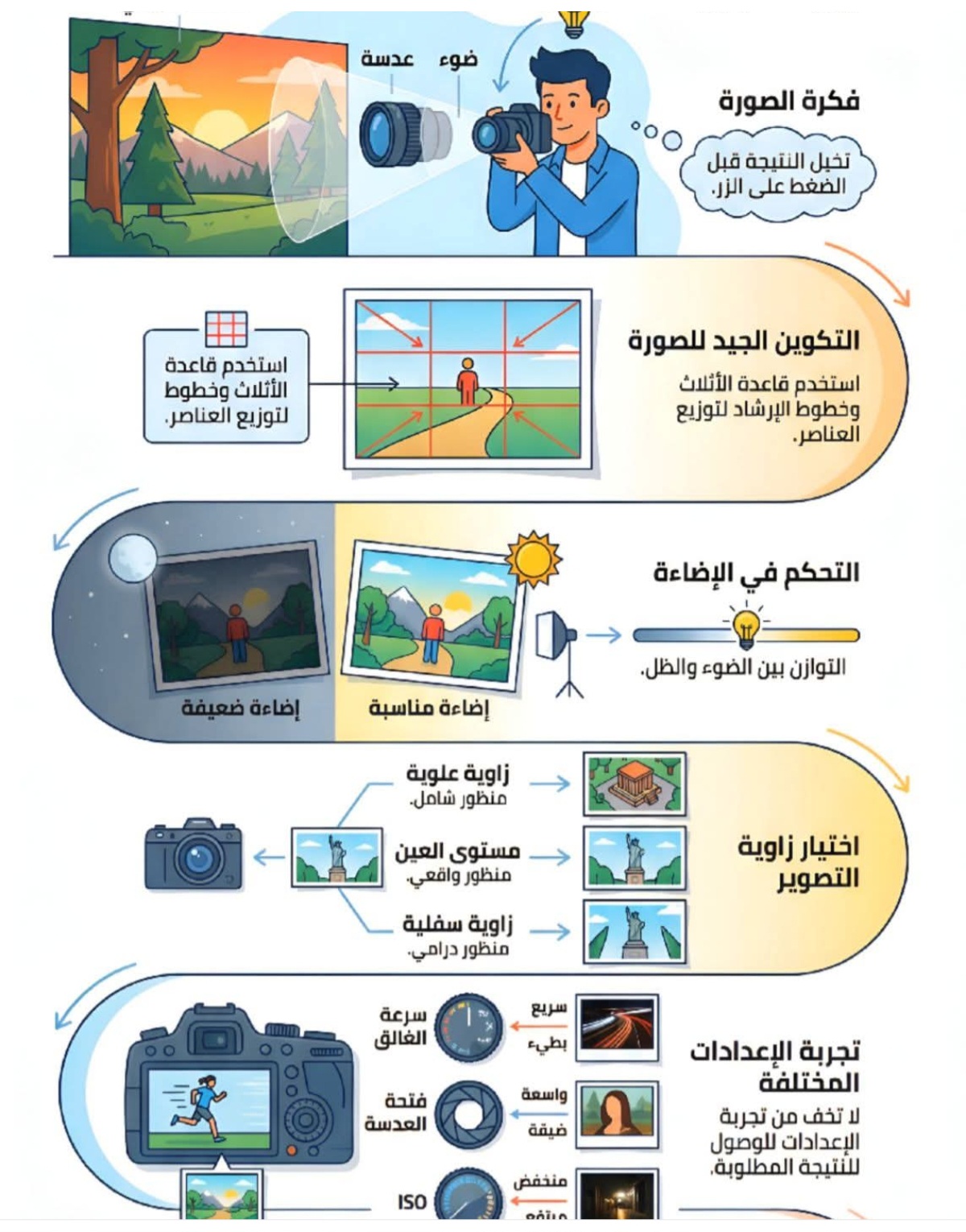 الإنفوجرافيك في هذه الصورة يقدم دليلًا مبسطًا يحتوي على أهم القواعد التي يعتمد عليها المصورون المحترفون لالتقاط صور مميزة. 👇