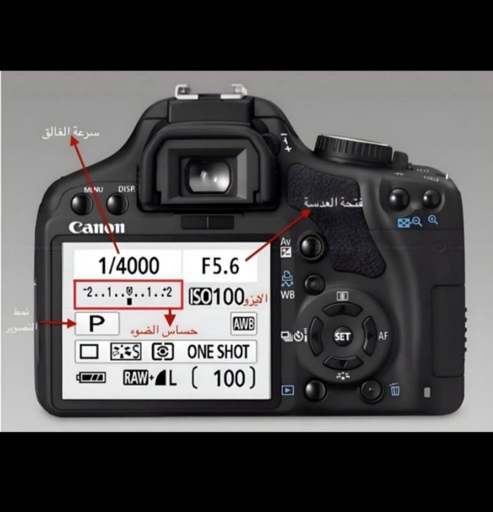 الصورة دي بتشرحلك ببساطة مكان وأهمية “مؤشر حساس الضوء” في كاميرات كانون، وده بيظهرلك لو الإضاءة مناسبة ولا لأ ☀️🌑
