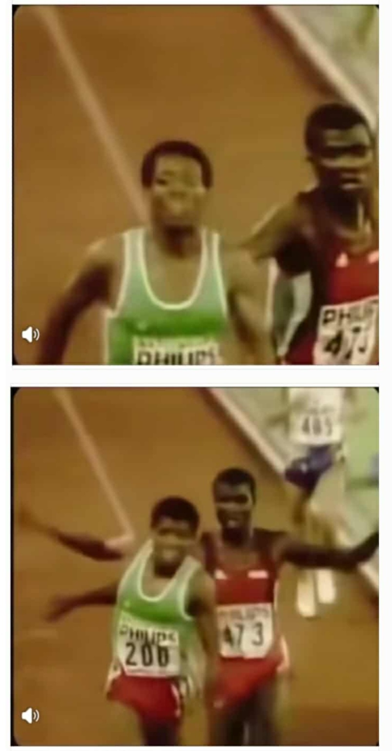 قبل خط النهاية بثوانٍ معدودة، ومع اقتراب السباق من ذروته، تقدّم جيبرسلاسي بسرعة خاطفة تجاوز بها ماتشوكا في اللحظة الحاسمة. وهنا حدث المشهد الذي سيُعاد بثّه لسنوات طويلة:
