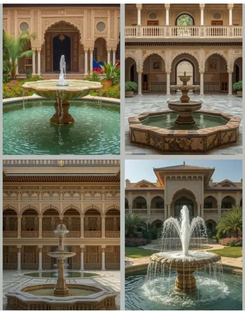 وفي قلب هذا التكوين كله تبرز قاعة الاستقبال الكبرى “الإيوان”؛ قاعةٌ وُلدت لتكون عنوان القصر. تتزيّن بالفسيفساء، وتتخلّلها نوافذ الأرابيسك المشغولة بالخشب الملوّن.
