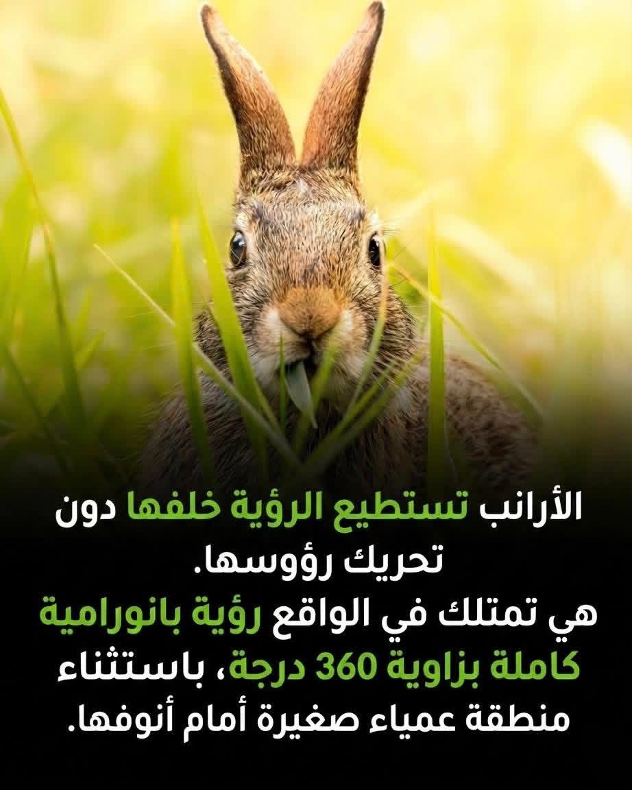 في المرة القادمة التي تشاهد فيها أرنباً يقضم قطعة من العشب (كما في الصورة)، تذكر أنه على الرغم من مظهره الهادئ، إلا أنه “يراقبك” بدقة متناهية… حتى لو كان ظهره لك!