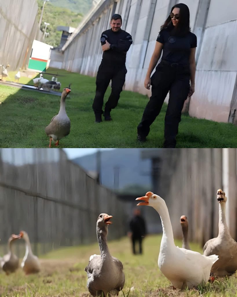 في بعض سجون البرازيل، وتحديدًا في سجن ساو بيدرو دي ألكانتارا، لا يبدأ الإنذار بعواء كلب ولا بصفارة حارس… بل بصيحة إوزة غاضبة.