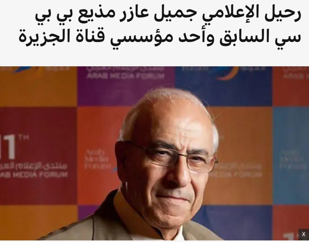 رحيل الإعلامي جميل عازر مذيع بي بي سي السابق وأحد مؤسسي قناة الجزيرة