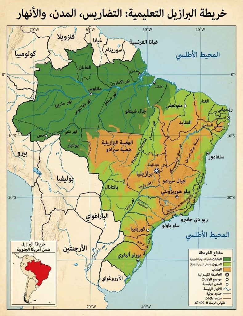 البرازيل 🇧🇷 – قلب أمريكا الجنوبية والطبيعة الخلابة 🌿🌊🌍 الموقع:تقع البرازيل في أمريكا الجنوبية، ويحدها:فنزويلا، غيانا، سورينام، وفنزويلا شمالًابيرو وكولومبيا غربًابوليفيا وباراغواي جنوب غربالأرجنتين وأوروغواي جنوبًاوتطل على المحيط الأطلسي شرقًا 🌊✨ معلومات أساسية:📍 العاصمة: برازيليا👥 عدد السكان: حوالي 215 مليون نسمة📐 المساحة: 8,515,767 كم²🗣️ اللغة الرسمية: البرتغالية💰 العملة: الريال البرازيلي🌳🏞️ الجغرافيا والطبيعة:غابات الأمازون المطيرة، أكبر غابة استوائية في العالم 🌿🐒سهول ونهر الأمازون العظيم 🌊سواحل طويلة على المحيط الأطلسي مع شواطئ رائعة 🏖️جبال وسهول داخلية متنوعة تضيف إلى التنوع الطبيعي ⛰️🌾🏛️ التاريخ والثقافة:مزيج من الحضارات الأصلية والثقافات البرتغالية والإفريقية 🌍معروف بالكارنفالات الملونة والموسيقى مثل السامبا والبوسا نوفا 🎶💃مدن شهيرة: ريو دي جانيرو، ساو باولو، وسلفادور💹 الاقتصاد:يعتمد على الزراعة (القمح، البن، قصب السكر) 🌾☕صناعات متنوعة تشمل السيارات والطائرات والتعدين 🏭✈️السياحة جزء مهم من الاقتصاد، خاصة الشواطئ والطبيعة الخلابة 🌴🌟 حقائق مميزة:أكبر دولة في أمريكا الجنوبية من حيث المساحة والسكانتتميز بالتنوع البيولوجي الهائل 🌱🦜كرة القدم جزء من الهوية الوطنية ⚽🇧🇷#البرازيل #أمريكا_الجنوبية #تاريخ #جغرافيا #ثقافة #معلومات_عامة 🇧🇷# مجلة ايليت فوتو ارت..