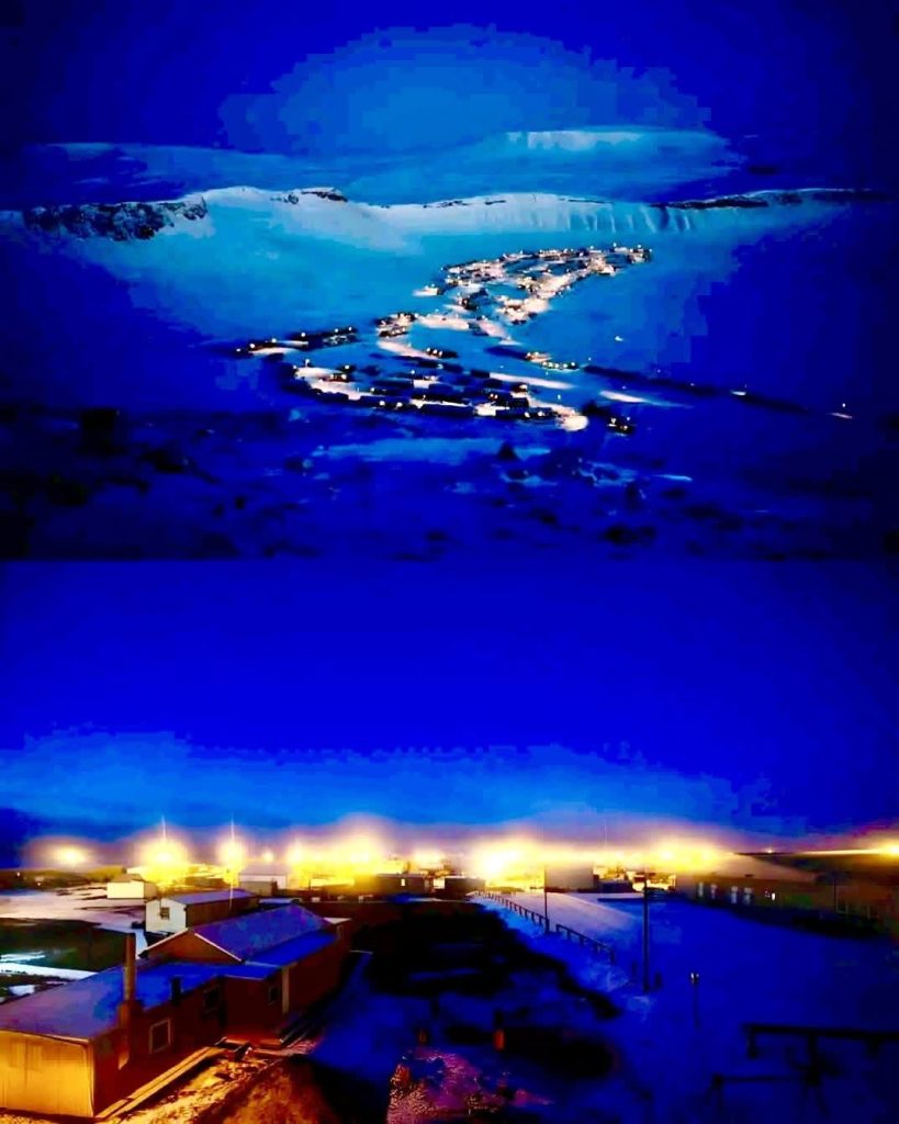 لكن الغرابة لا تتوقف هنا. رغم غياب الشمس، لا يغمر الظلام الدامس المدينة بالكامل. حول منتصف النهار، يحصل السكان على شفق أزرق باهت—ضوء ناعم ينبعث من الشمس وهي تحت الأفق، كأن الطبيعة تمنحهم بصيصًا من الضوء ليواصلوا حياتهم. المدارس تفتح، العمل يسير، والسكان يتكيفون باستخدام الإضاءة الصناعية، الروتين الداخلي، وحتى المكملات الغذائية لتعويض نقص فيتامين د.