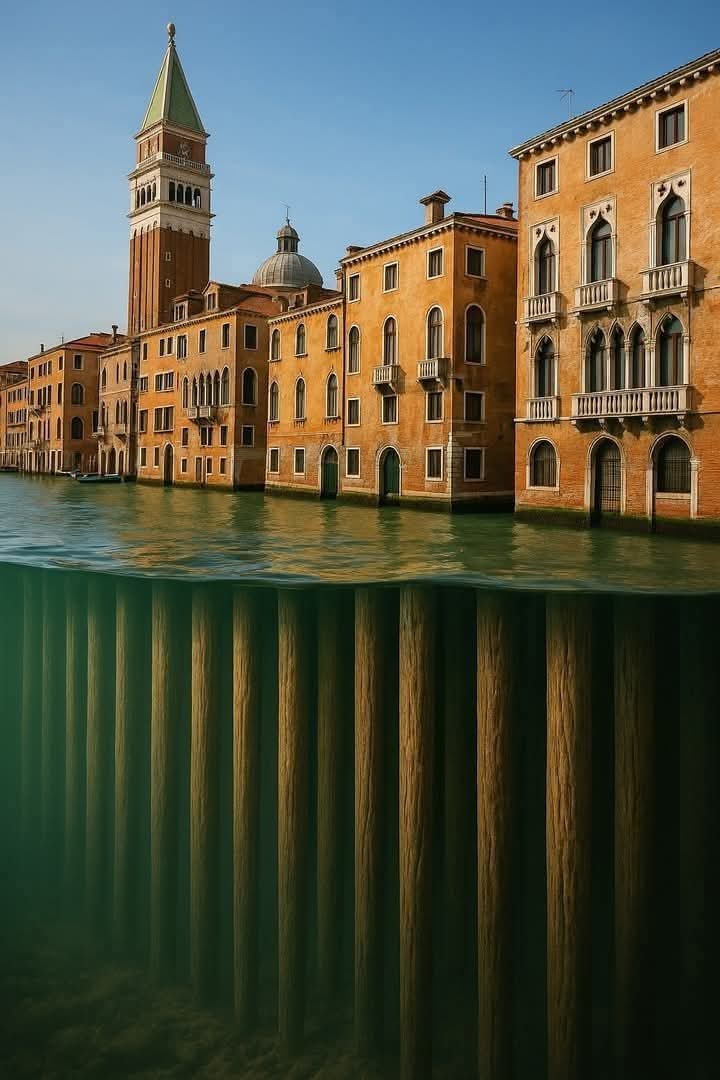 هل تعلم أن مدينة البندقية في إيطاليا لم تُبن على أرض صلبة بل على ملايين من جذوع الأشجار المدفونة في قاع البحر منذ عام 421 ميلاديًا والبندقية تتحدى الزمن والمنطق الهندسي، فهي قائمة على خشب شجر الألدر المقاوم للتعفن، والذي يتحول بمرور الوقت إلى مادة صلبة تشبه الحجر.