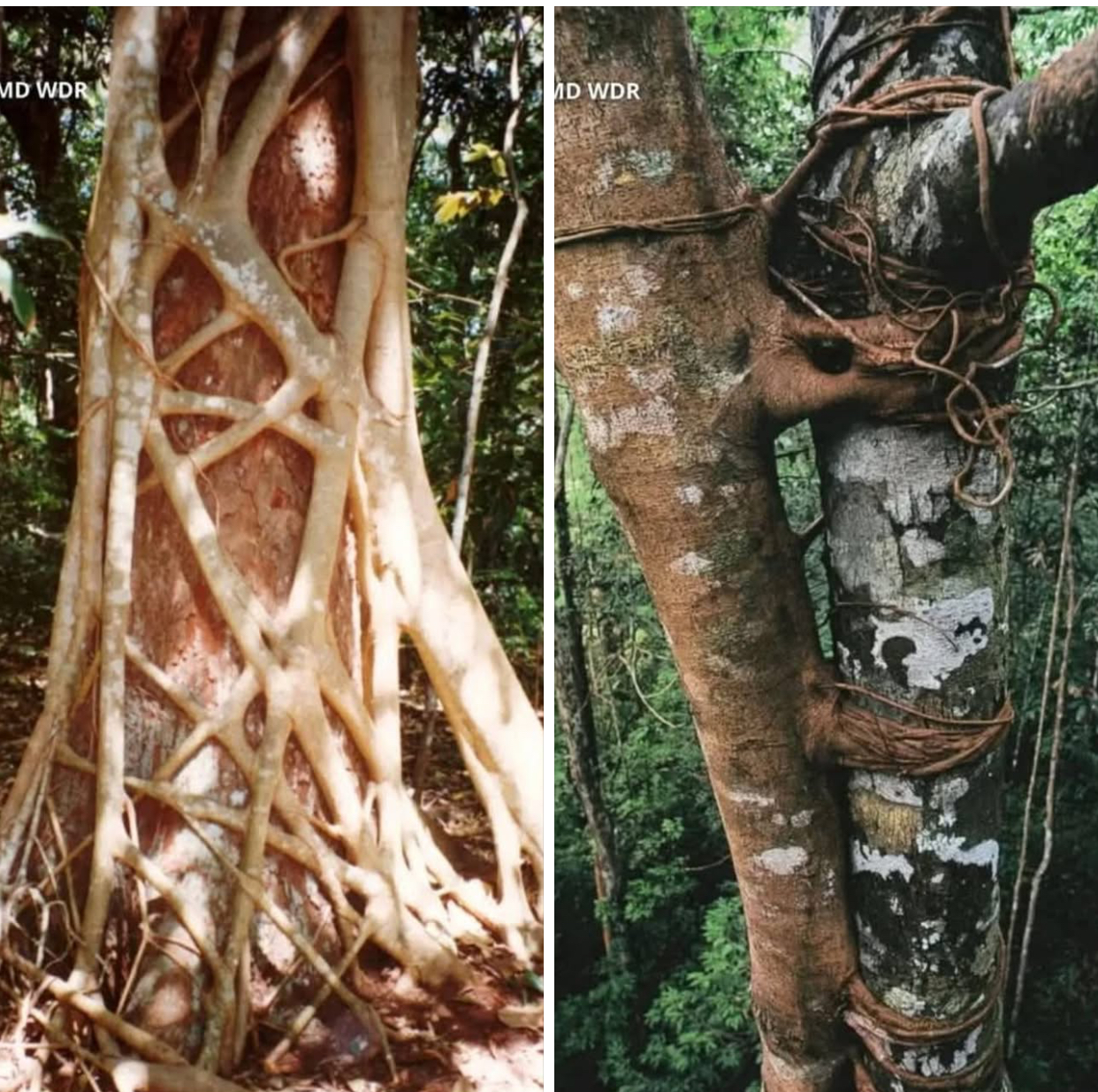 الجذور تتضخم، تتشابك، وتلتف حول جذع الشجرة الأصلية المسكينة، وتغلق عليها مثل قفص حيّ يضيق يوما بعد يوم
