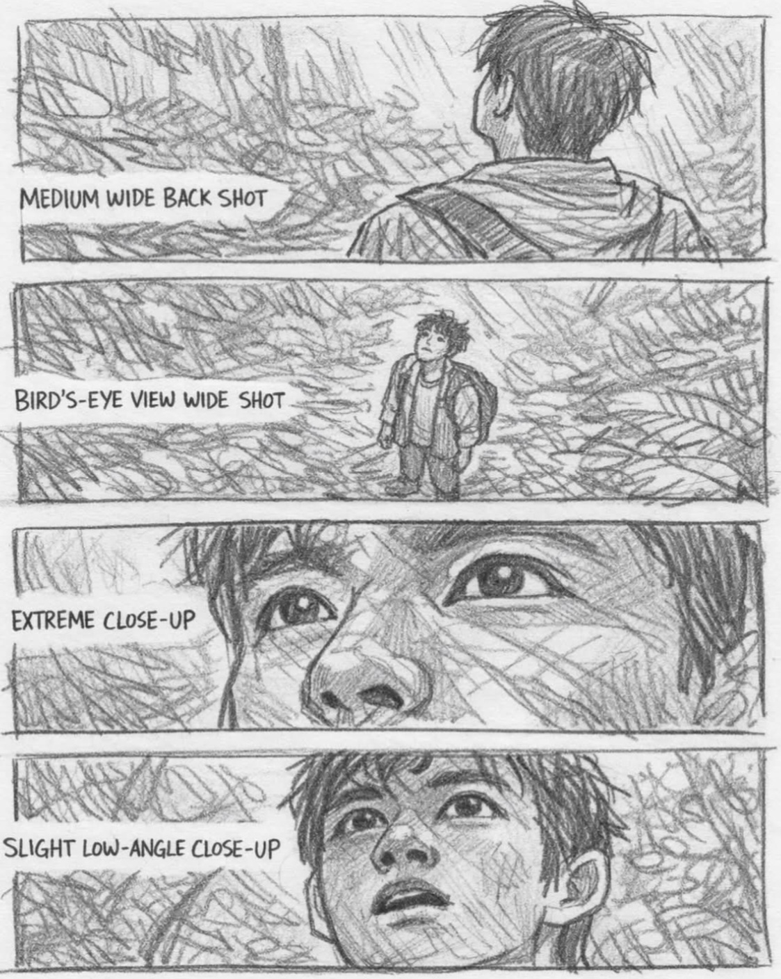 هذه الرسومات البسيطة أمامك ليست مجرد خربشات بقلم رصاص… بل هي ما يُسمّى في عالم السينما Storyboard 🎬