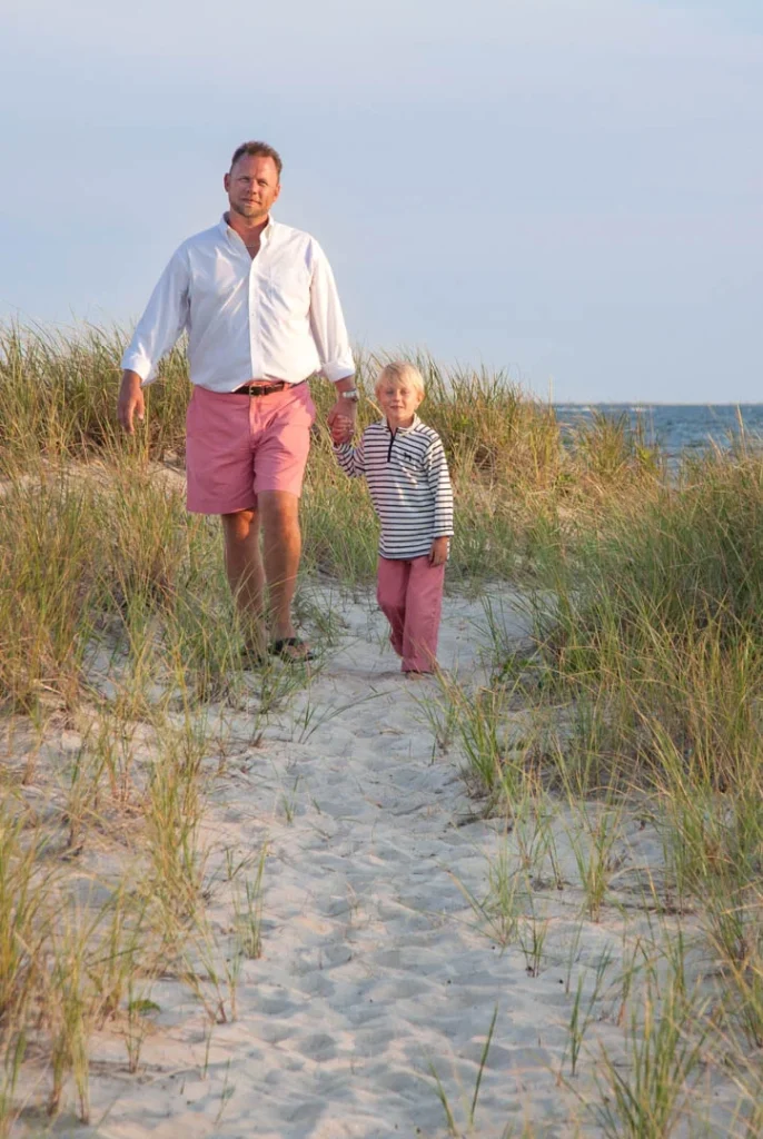 تُستخدم الخطوط الموجهة عادةً للإشارة إلى الموضوع الرئيسي في الصورة. في هذه الحالة، يُعدّ المسار الرملي خطًا موجهًا نحو الأب وابنه.
