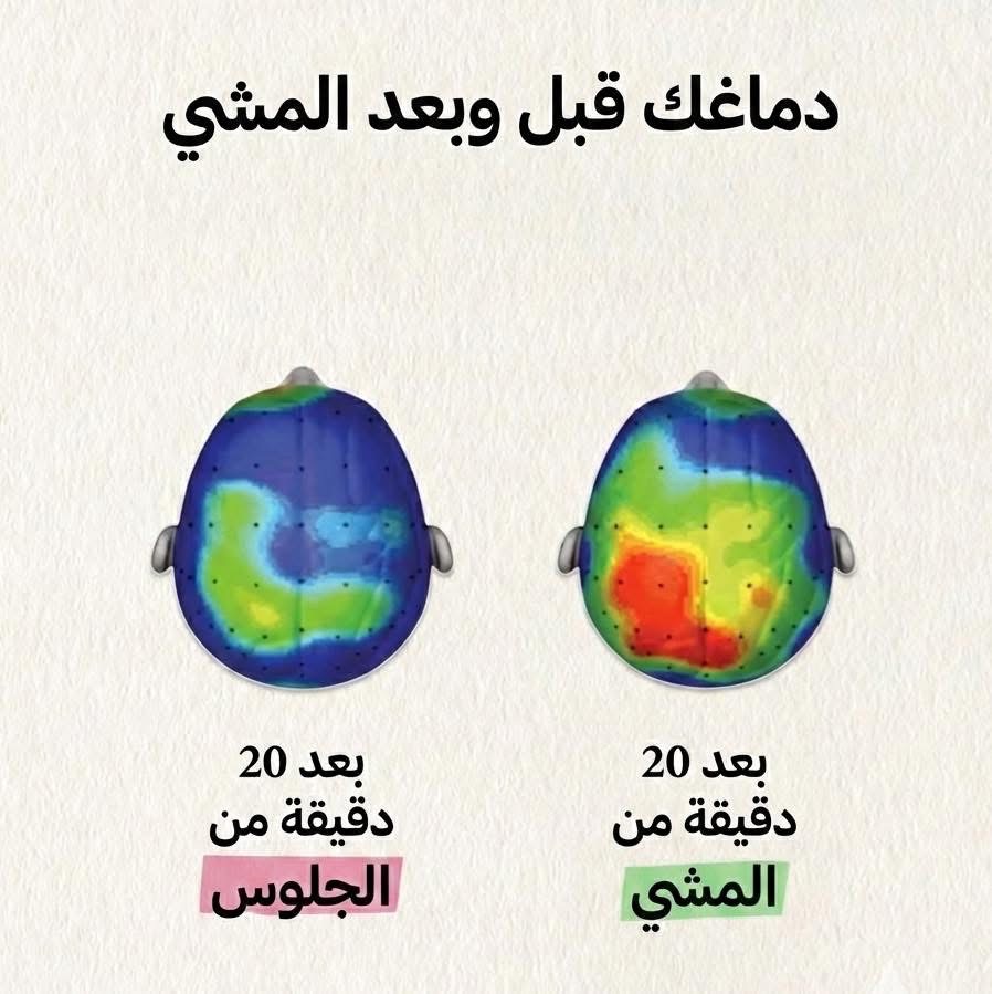 هذه الصورة هي تذكير قوي بأن أجسادنا وعقولنا مصممة للحركة. المشي ليس مجرد تمرين لعضلات ساقيك، بل هو وقود مباشر لعقلك. في المرة القادمة التي تشعر فيها بالخمول الذهني، تذكر هذه الصورة، وامنح عقلك هدية الحركة! خطوات بسيطة قد تكون كل ما تحتاجه “لإضاءة” يومك.