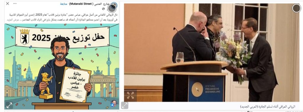 الروائي الألماني العراقي ( عباس خضر )..” نال جائزة برلين للأدب” للعام 2025م، والتي تُعتبر إحدى الجوائز الأدبية الكبرى في أوروبا.- مشاركة: عارف حمزة.