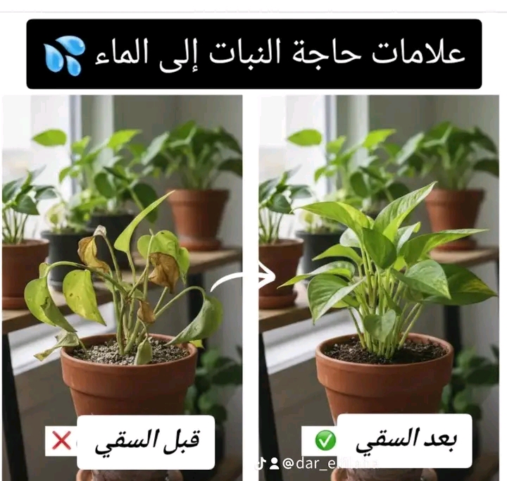 🥀الذبول: إذا بدأت الأوراق بالارتخاء والتدلي، فهي تطلب الماء.