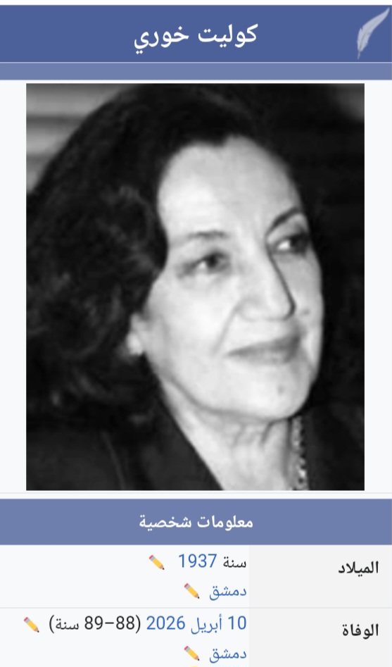 كانت كوليت خوري، وستبقى، أيقونة دمشق، وأديبتها، وجميلتها، وعاشقتها. عُرفت بألقابٍ عديدة، وكان الأقرب إلى قلبها حين تقول عن نفسها: “أنا بنت الجلاء”. وها هي ترحل قبل أيامٍ من الذكرى الثمانين لعيد الجلاء.
