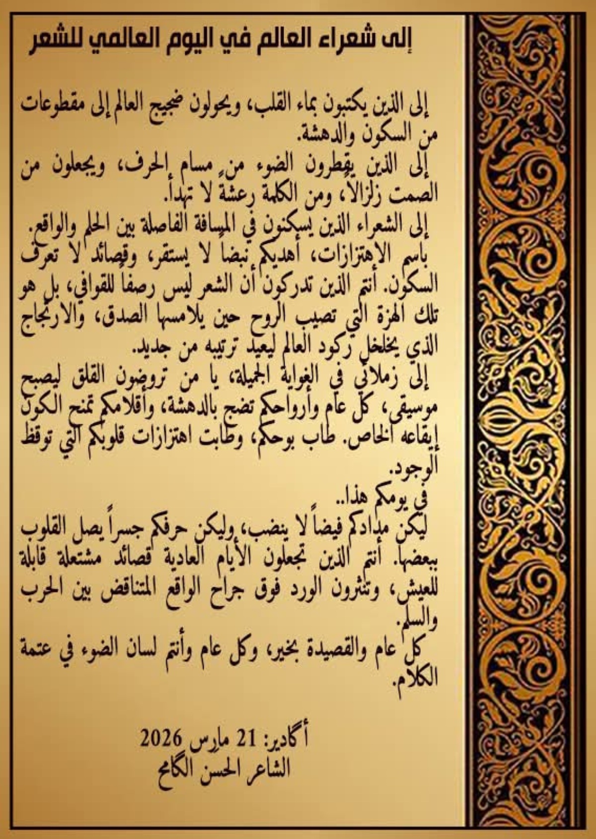 إلى شعراء العالم في اليوم العالمي للشعر