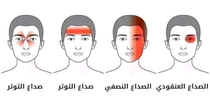توجد_8_أنواع_للصداع .🟢 1#_ ️صداع التوتر.هذا هو النوع الأكثر شيوعاً من الصداع، الذي عادة ما يجعلك تشعر بألم أو ضغط يبدأ من جانبي الرأس ويمتد ليشمل مؤخرة الرأس والعنق والفك.🟢 2#_ ️الصداع النصفي.عبارة عن ألم شديد في جانب واحد من الرأس وقد يصاحبه الدوار أو القئ ويسبب حساسية تجاه الأصوات والضوء 🟢 3#_الصداع العنقود.صداع مؤلم جداً يأتي في جانب واحد من الرأس ويصاحبه احتقان في الأنف وألم ودموع في العين 🟢 4#_صداع الجيوب الأنفية.هو عبارة عن ألم في مقدمة الرأس والوجه والعينين ويكون بسبب التهاب الجيوب الأنفية🟢 5#_صداع الكافيين.إذا كنت تعتاد على شرب القهوة يومياً في موعد محدد ثم لم تشربها يوماً ما في التوقيت نفسه .. هنا قد تعاني من صداع انسحاب الكافيين وستكون أكثر عرضة للإصابة بهذا النوع 🟢 6#الصداع الهرموني.تعاني معظم النساء من هذا النوع من الصداع المرتبط بتغيير مستوى الهرمونات نتيجة استخدام حبوب منع الحمل أوخلال فترة الحيض أو الحمل 🟢 7# ️صداع ألم الأسنان.هو ألم ناتج عن وجود آلام في الأسنان التي تكون بسبب الجز على الأسنان أثناء الليل أو احتكاكها بسبب التوتر 🟢 8#_ ️الصداع المتردد.يمكن أن يؤدي الاستخدام المفرط لبعض الأدوية أو مضادات احتقان الأنف إلى انسداد الأنف والشعور بالصداع المرتد الذي يذهب ثم يرتد