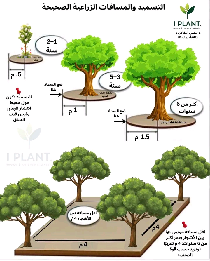 تسميد صحيح + مسافة صحيحة = جذور صحية + شجرة قوية + إنتاج أفضل.