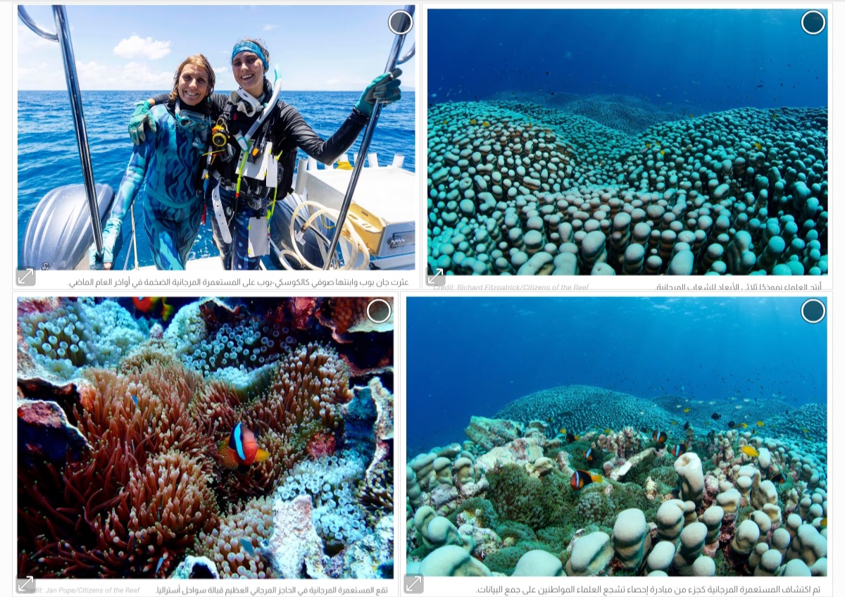 تمكّن فريق من العالِمات، يضم أمًا وابنتها، من رصد أكبر مستعمرة مرجانية معروفة في العالم، تقع في الحاجز المرجاني العظيم قبالة سواحل أستراليا.