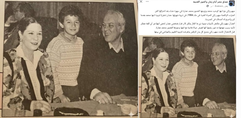 اعتزلت الراقصة سهير زكي الحياة الفنية في عام 1984، في ذروة شهرتها عشان تتفرغ لتربية ابنها محمد بعدما كبر وأصبح له أصدقاء في المدرسة.