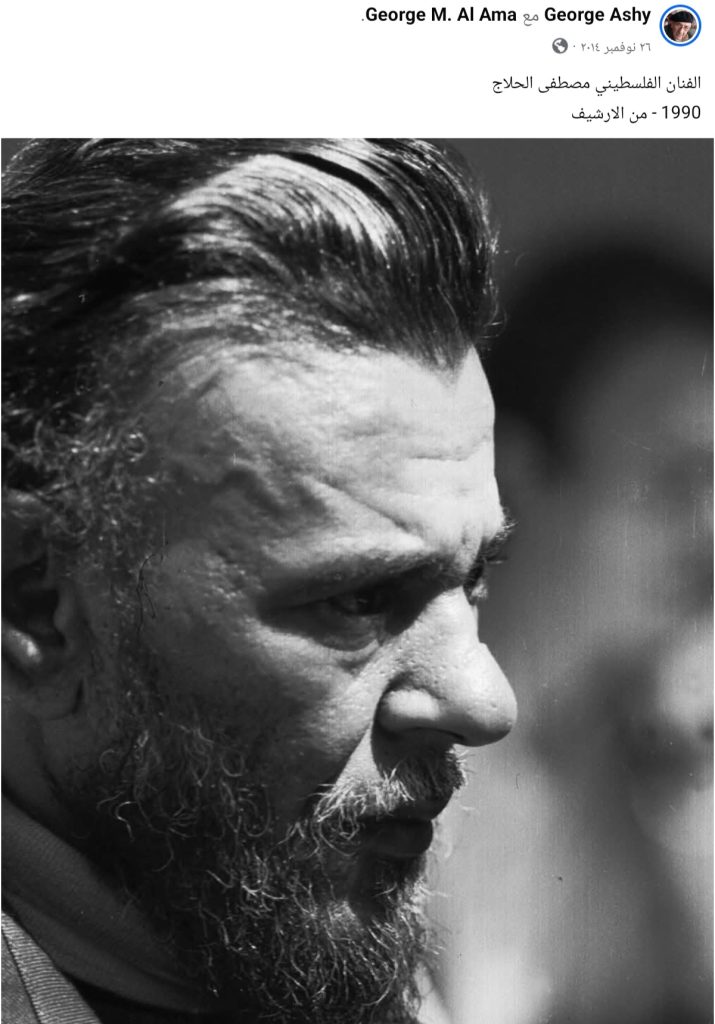 مصطفى الحلاج فنان تشكيلي ونحات فلسطيني (مواليد يافا، عام 1938م). مارس فن الغرافيك مبكرًا، وكذلك الرسم والتصوير والطباعة الفنية وفن الملصق (البوستر). اهتمّ بقراءة الجذور الكنعانية والمصرية في رسوماته الغرافيكية وابتكر خطوطه وحفرياته الخاصّة، وله أطول لوحة جدارية في العالم، هي لوحة «ارتجالات الحياة» التي يبلغ طولها 114 متراً وعرضها 36 سم. تنقل في الشتات وعاش في مدن عربية مختلفة. توفّي في دمشق في العام 2002.