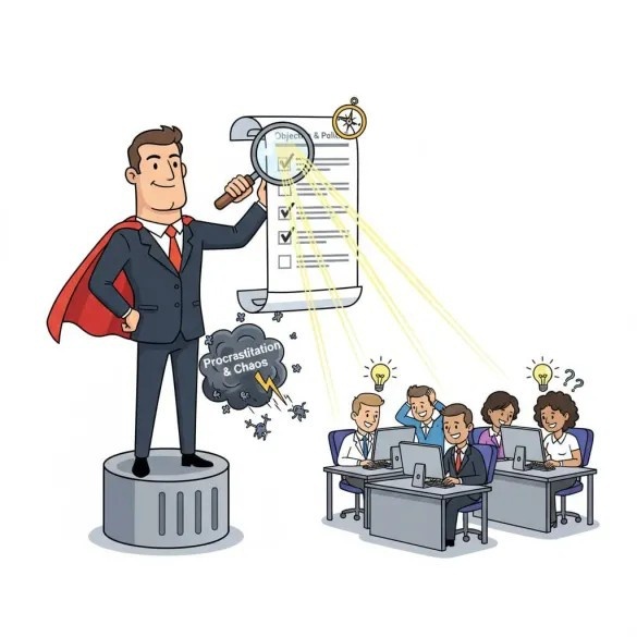 — التفصيل الدقيق: يفتقر القائد غير الحازم إلى تحديد الأهداف والمسؤوليات والنتائج المتوقعة بوضوح. يشعر الموظف بالضياع، ولا يعرف بالضبط ما هي أولوياته أو كيف سيتم تقييم أدائه، مما يؤدي إلى بذل الجهد في الاتجاه الخاطئ أو تضارب في فهم المهام.