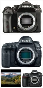 كانت كاميرتا Pentax K1 وK1 II أول كاميرتين DSLR كاملتي الإطار من Pentax. على الرغم من أنهما لا تتمتعان بنفس مستوى أداء التركيز التلقائي لكاميرات Canon وNikon DSLR، إلا أنهما مُعدّلتان بدقة لتصوير المناظر الطبيعية، بما في ذلك مُتتبع فلكي مدمج لتصوير درب التبانة.