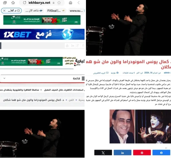 د.كمال يونس المونودراما والون مان شو هما شكلان مسرحيان يعتمدان على ممثل واحد، لكنهما يختلفان في طبيعة العرض والهدف. المونودراما هي شكل مسرحي قائم على نص درامي مكتوب لشخصية واحدة، حيث يواجه الممثل صراعاً داخلياً أو خارجياً، ويسعى لإيصال فكرة أو مشاعر معينة للجمهور. بينما الون مان شو هو عرض ترفيهي يعتمد على قدرات الممثل في الأداء والكوميديا وارتجال المواقف، ويهدف إلى إضحاك الجمهور وتسليته.المونودراما نص جاد منضبط كوميدي أو تراجيدي غالبا علي خشبة المسرح وعرض الرجل الواحد الوان مان شو عرض كوميدي مرتجل كلاهما عرض يؤديه ممثل واحد في استعراض لقدراته على التأثير في الجمهور على خشبة المسرح أو في فضاء حر #مجلة ايليت فوتو ارت.