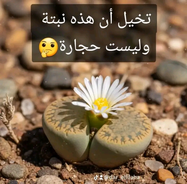 موضوعنا يجمع بين الغموض😱، الطبيعة🏜، والقدرة المذهلة على التكيف🔄: “النباتات الحجرية” أو “الليكوبس” (Lithops).هل هذه حجارة أم كائنات حية؟ 🪨 النبتة التي “تتنكر” لتبقى على قيد الحياة!🏜لو كنت تمشي في صحاري جنوب أفريقيا، فمن المستحيل أن تلاحظها. إنها “الليكوبس” أو النباتات الحجرية، أذكى نباتات العالم في فن التمويه.🏜لماذا تخدعنا هذه النبتة؟التنكر (Camouflage): تعيش هذه النباتات في بيئات قاسية جداً، ولكي لا تأكلها الحيوانات العطشى، تطورت لتبدو تماماً مثل الحصى والحجارة المحيطة بها.🪨عزق الماء: النبتة عبارة عن ورقتين ملتصقتين جداً، تعملان كخزان ماء صغير، وهي قادرة على البقاء لشهور دون قطرة ماء واحدة.🪨النافذة العلوية: الجزء العلوي من “الحجر” شفاف قليلاً، وهو يعمل كـ “نافذة” تسمح لضوء الشمس بالدخول لقلب النبتة لإتمام عملية البناء الضوئي وهي مدفونة تحت الرمال!كيف تزرعها؟ الإهمال الجميل: هذه النبتة تموت إذا دللتها! اسقِها مرة واحدة كل شهر أو شهرين فقط.التربة: تحتاج تربة رملية وحصوية بنسبة 90%، لأن أي رطوبة زائدة تجعلها تنفجر وتتعفن.💡 لحظة السحر:رغم شكلها الحجري الجامد، إلا أنها في فصل الخريف “تنشق” من المنتصف لتخرج منها زهرة بيضاء أو صفراء غاية في الجمال، وكأن الحجر قد نطق بالجمال! 🌼🎯لا نملك هذه النبتة. موضوع للثقافة العامة#الصيدلية_الزراعية_دار_الفلاحة# مجلة ايليت فو