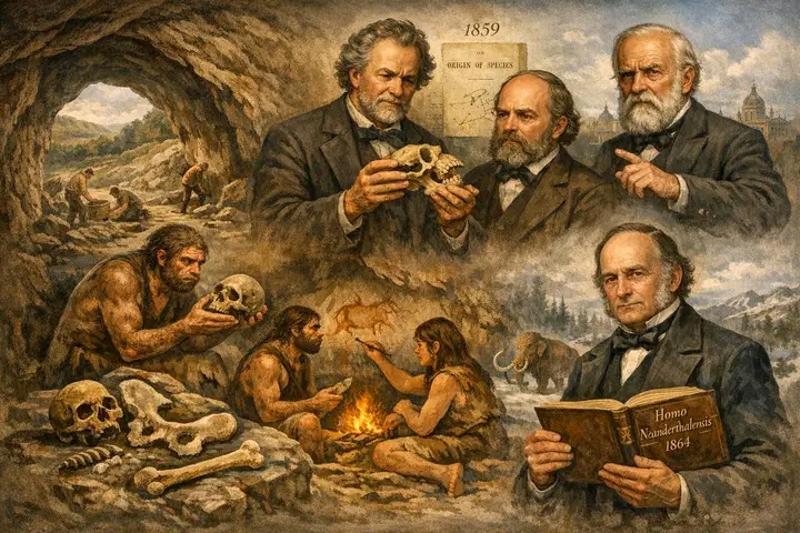 بدأت قصة اكتشاف النياندرتال من خلال احافير تم العثور عليها في انجيس في بلجيكا عام 1829 وجبل طارق عالم 1848 ولكن لم يتم الانتباه إلى ان هذا النوع هو نوع بشري الا في عام 1856 في وادي نياندرتال (Neanderthal) قرب مدينة دوسلدورف في ألمانيا. حيث عُثر على عظام بشرية غريبة داخل كهف أثناء أعمال في مقلع للحجر الجيري، شملت: جزءًا من الجمجمة وعظام الأطراف والحوض. في البداية، لم يكن واضحًا هل تعود لإنسان حديث مريض أم لكائن آخر. اول من ادرك اهميتها العلمية هو العالم يوهان كارل فولروت (Johann Carl Fuhlrott)وهوعالم تشريح ألماني، كان أول من قال إن هذه العظام قديمة جدًا ولا تعود لإنسان حديث. ودعمه علميا العالم هيرمان شافهاوزن (Hermann Schaaffhausen)حيث أكّد أن الصفات التشريحية مختلفة بشكل واضح عن الإنسان الحديث. لم تلقى افكار هذين العالمين صدى واسع بسبب ان نظرية التطور لداروين لم تنتشر بعد حيث لم يظهر كتاب اصل الانواع في حينها فتاريخ نشر هذا الكتاب كان عام 1859. تم رفض افكار هذين العالمين من قبل الكثير من العلماء وابرزهم ودولف فيرشو (Rudolf Virchow)وهو احد كبار علماء الطب في القرن التاسع عشر ,اذ فسر العظام بكونها تعود الى انسان حديث ربما كان مصاب بالكساح أو تشوها عظميا وهذا ما جعل الاعتراف بالنياندرتال كنوع بشري مستقل يتأخر لفترة زمنية طويلة, ولكن بعدها تم الاعلان عن اكتشاف احافير مماثلة في بلجيكا وفرنسا واسبانيا وعدد من الدول الاوربية وبدا انه من غير المنطقي ان ينتشر مرض قادر على تشويه الانواع البشرية الحديثة بهذه الطريقة. وعلى هذا الاساس تم اقتراح ان النياندرتال نوع بشري مستقل من قبل العالم الجيولوجي ويليام كينغ عام 1864 واطلق عليه تسمية Homo Neanderthalanesis من خلال عرض قدمه امام الجمعية البريطانية لتقدم العلوم, وتم نشره على اساس انه نوع بشري منفصل عن الانسان العاقل,ولكن الجدل استمر لسنوات حول كون النياندرتال نوع بشري منفصل ولكن الابحاث الجينية والتحاليل الجيولوجية التي تمت في تسعينات القرن التاسع عشر وبدايات القرن العشرين اثبتت ان هذا النوع هو نوع مختلف وراثيا وتشريحيا عن الانسان العاقل. قصة النياندرتال لم تنتهي عند الاعتراف به كنوع بشري منفصل , فالصورة النمطية حول هذا النوع كونه متوحش ويميل إلى العنف ولا يمتلك من المهارات العقلية والبدنية استمرت فترة طويلة جدا, ولكن مع تقدم العلوم واكتشاف العديد من الاحافير التي تثبت ان هذا النوع البشري كان قادرا على استخدام النار فضلا عن امتلاكه القدرة على الرسم وصناعة ادوات الصيد غيرت من هذه الصورة النمطية وأكدت أن هذا النوع البشري كان ذكيا جدا واجتماعيا فضلا عن قدرته على التأقلم مع المناخات الباردة التي كانت تميز اوربا خصوصا لدى الانواع التي عاشت في اوربا.ولكن قصة انقراضه لازالت غامضة فقسم من الفرضيات كان تعزو انقراضه الى صراعه مع الانسان العاقل الذي وصل الى افريقيا , واخرى تقول ان التقلبات المناخية هي من ساهمت بانقراضه وفرضيات اخرى ترجح انتقال الامراض من الانسان العاقل الى النياندرتال عبر عملية التزاوج , في حين ان فرضيات اخرى تقول انه لم ينقرض بل ان حمضه النووي قد ذاب مع الانسان العاقل من خلال عمليات التزاوج. .# العلم للجميع# مجلة ايليت فوتو ارت.