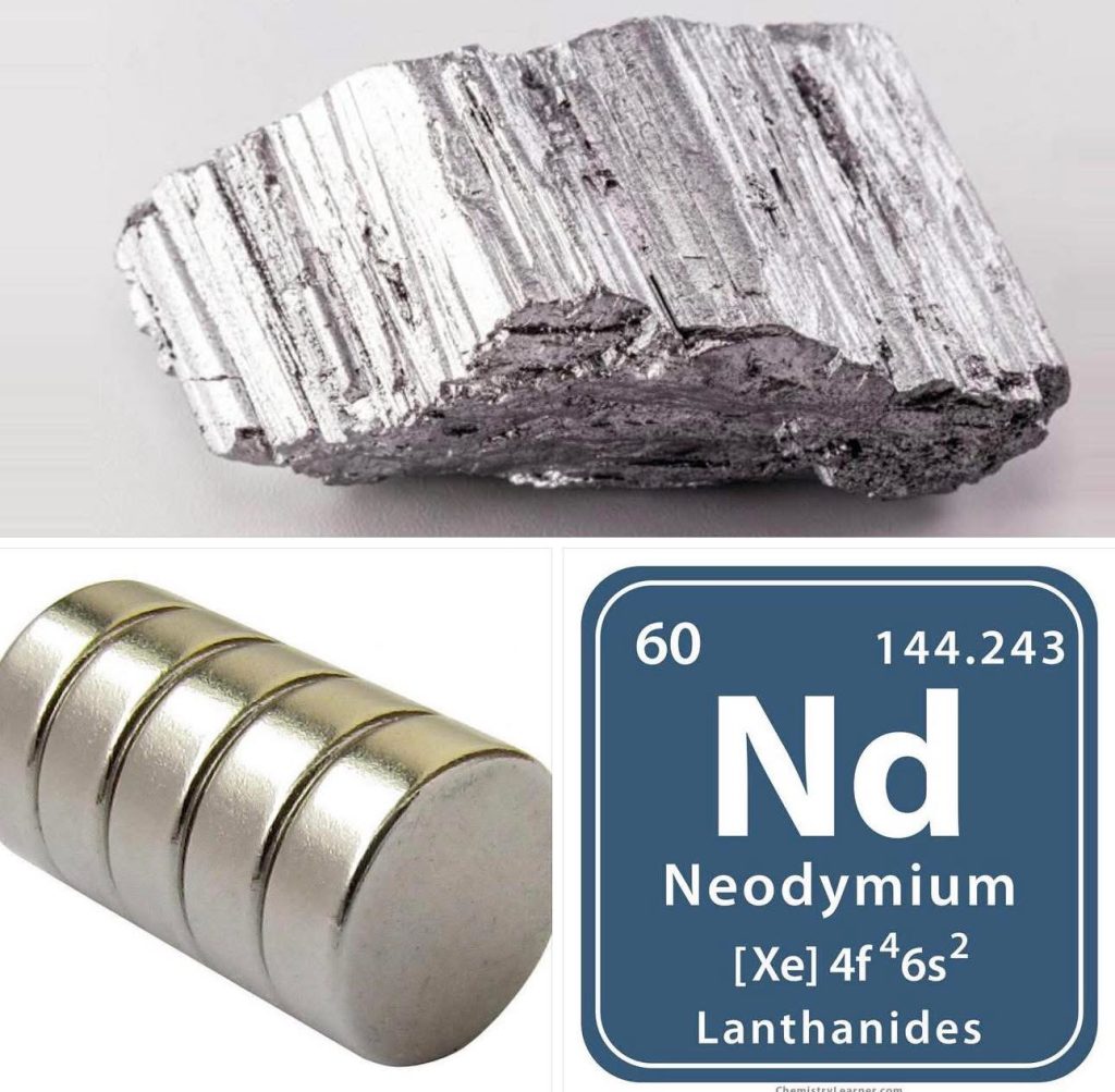 النيوديميوم عنصر نادر يُستخدم لصناعة أقوى مغناطيسات في العالم .