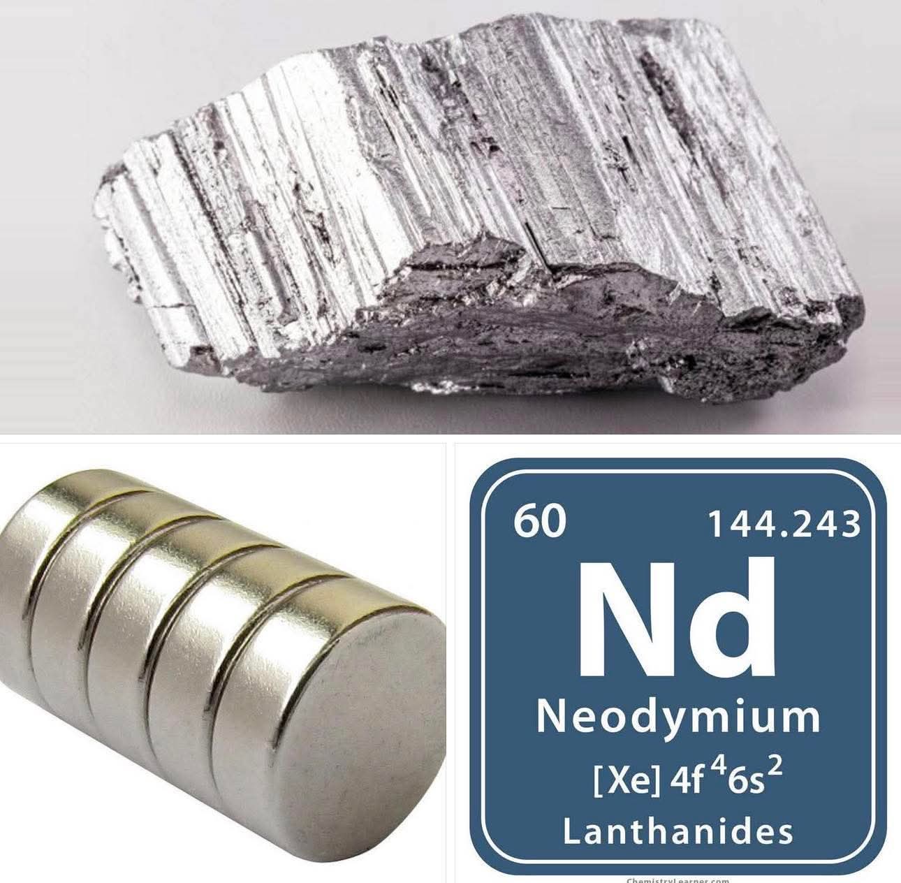 عنصر النيوديميوم (Neodymium) عنصر كيميائي في الجدول الدوري له الرمز Nd والعدد الذري 60 يتميّز بعدة خصائص جعلته من أهم عناصر اللانثانيدات (العناصر الأرضية النادرة)، وأبرز ميزاته هي: 1. أقوى المغناطيسات المعروفة: •يُستخدم لصناعة مغناطيسات نيوديميوم–حديد–بورون (NdFeB) •تُعد أقوى مغناطيسات دائمة في العالم •صغيرة الحجم لكن قوتها هائلة2. دور أساسي في التكنولوجيا الحديثة:يدخل في: •محركات السيارات الكهربائية •توربينات الرياح •السماعات، وسماعات الأذن •الأقراص الصلبة •الهواتف الذكية3. خصائص مغناطيسية مميزة: •يحتفظ بمغناطيسيته لفترة طويلة •مقاوم لفقدان المجال المغناطيسي •فعّال حتى عند أحجام صغيرة4. خصائص بصرية فريدة: •يُستخدم في الزجاج الملون لإنتاج ألوان بنفسجية وزرقاء عميقة •يدخل في نظارات الحماية من الليزر •يُستعمل في ليزرات Nd:YAG الطبية والصناعية5. عنصر استراتيجي نادر: •لا يُستغنى عنه في الصناعات المتقدمة •له أهمية اقتصادية وجيوسياسية عالية6. خصائص فيزيائية: •لونه فضي لامع •قابل للأكسدة بسرعة في الهواء •يجب حفظه بعيدًا عن الرطوبةالخلاصة:ميزة النيوديميوم الأساسية هي قدرته الفائقة على تكوين مغناطيسات قوية جدًا تجمع بين القوة، الصِغر، والكفاءة، ما جعله عنصرًا لا غنى عنه في عالم التكنولوجيا الحديثة.النيوديميوم هو عنصر نادر يُستخدم لصناعة أقوى مغناطيسات في العالم ..# الفيزياء والفلك# مجلة ابليت فوتو ارت