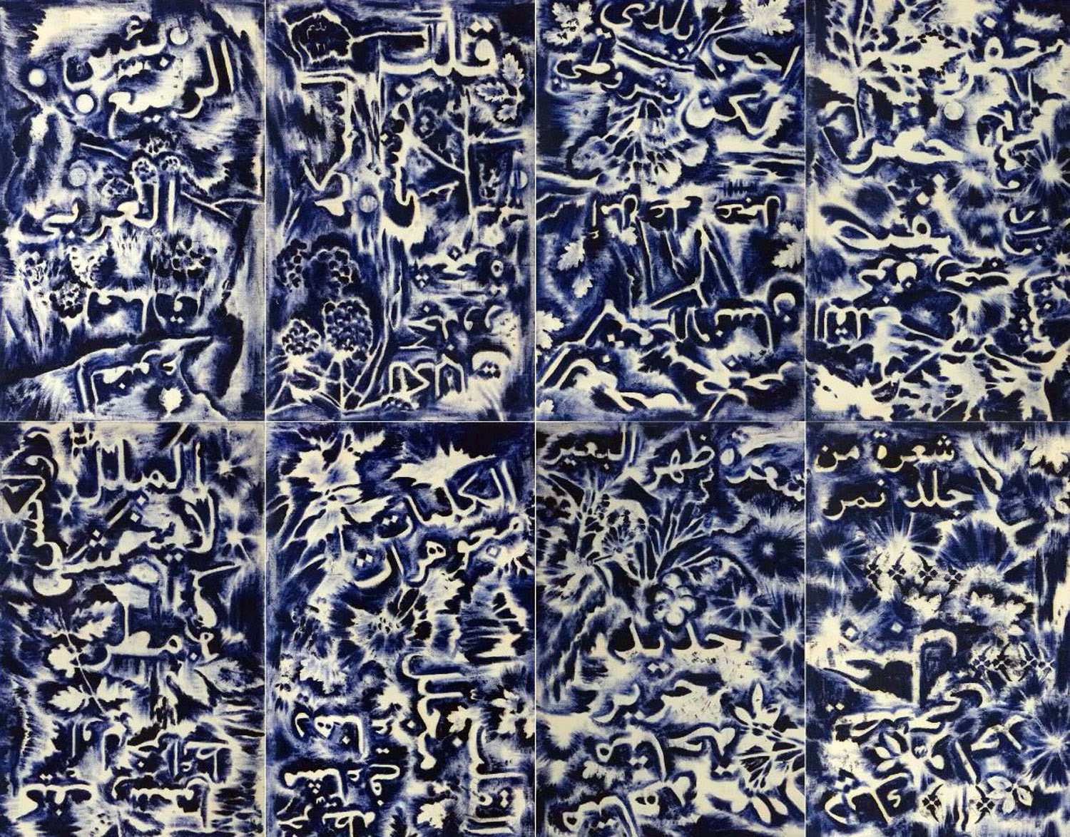 قد تبدو اللوحة كأثر أو بقايا نقش قديم أو حروف مطموسة بخطوط متداخلة تكاد تفُهم، إشارات بين الطمس والإلغاء، وكأن اللغة تحرّرت من وظيفتها لتصبح أثرا، لتصبح مفهومية في العمل الفني، تشير إلى هشاشة المعنى في عالم مثقل بالانكسارات أو صعوبة النطق في أزمنة افتراضية اللغة واندثار الكتابة لأن الكتابة أصبحت ترهق اللغة وكأنها تشبه العطش.