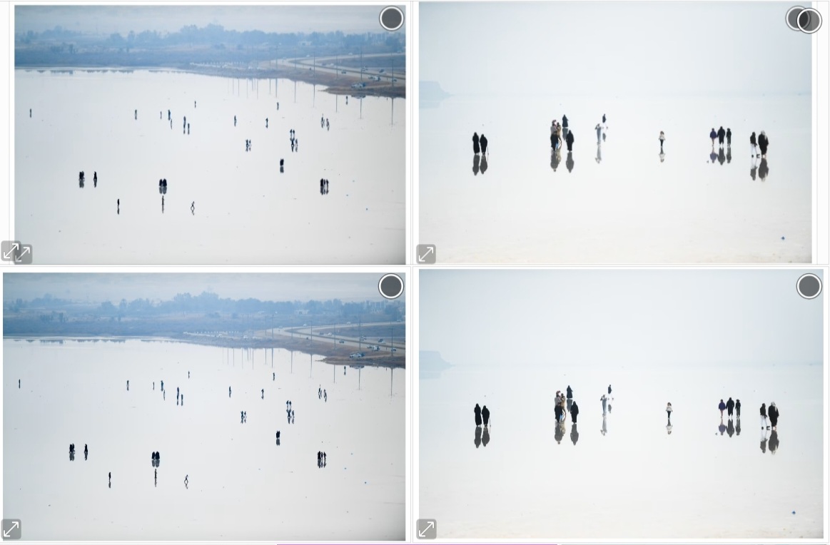 ورأى المصور الفوتوغرافي أنّ المشهد اكتسب تفرّدًا إضافيًا بفضل انعكاسات المياه الناتجة عن انخفاض منسوبها، مشيرًا إلى أنّ وجود الزوار والأطفال في الموقع “أعطى الصور روحًا إنسانية، وجعل المشهد حيًا ومفعمًا بالحياة”.