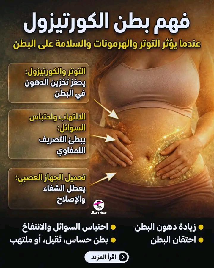 🌿 فهم بطن الكورتيزون لماذا تكافح كثير من النساء مع دهون البطن — حتى عندما يفعلن كل شيء “بشكل صحيح”يُعد بطن الكورتيزول من أكثر الإحباطات شيوعًا لدى النساء — وأكثرها سوءًا للفهم.كثير من النساء يتناولن الطعام الصحي.ويحاولن ممارسة الرياضة.”يفعلن كل الأمور الصحيحة”.ومع ذلك يبقى البطن:• مدورًا• رقيقًا (حساسًا للمس)• منتفخًا• ملتهبًا• مقاومًا للتغييرهذا ليس نقصًا في الانضباط.وهو ليس كسلًا.وهو ليس فشلًا شخصيًا.بطن الكورتيزول هو استجابة فسيولوجية للتوتر.🧠 ما هو الكورتيزول؟الكورتيزول هو هرمون التوتر الأساسي في جسمك. إنه ضروري للبقاء ويساعد في تنظيم:• سكر الدم• الالتهاب (على المدى القصير)• توافر الطاقة• دورات اليقظةيصبح الكورتيزول مشكلة عندما يبقى مرتفعًا لفترات طويلة، وهو أمر شائع في الحياة الحديثة — خاصة للنساء اللواتي عشن عبر توتر عاطفي، أو جسدي، أو طبي.🔁 لماذا يستهدف الكورتيزول البطنيحتوي منطقة البطن على تركيز عالٍ من مستقبلات الكورتيزول. هذا يعني أن هرمونات التوتر تفضل التصرف في هذه المنطقة.من منظور بيولوجي، يخزن الجسم الدهون حول البطن كآلية حماية — وليس لأسباب تجميلية. إنه جسمك يقول:”أحتاج إلى طاقة وحماية متاحة.”هذا هو السبب في أن زيادة الوزن المرتبطة بالكورتيزول تبدو وتشعر بشكل مختلف عن أنواع الوزن الأخرى.🌊 الجهاز اللمفاوي وبطن الكورتيزولالبطن غني بـ:• الأوعية اللمفاوية• العقد اللمفاوية• النشاط المناعي• النسيج الدهنيالتوتر المزمن والكورتيزول المرتفع:• يزيدان الالتهاب• يزيدان تسرب السوائل إلى الأنسجة• يبطئان التصريف اللمفاويعندما يصبح تدفق اللمف بطيئًا، يبقى السائل الالتهابي ونواتج الفضلات في أنسجة البطن. وهذا غالبًا ما يخلق:• انتفاخًا• شعورًا بالثقل• حساسية• شعورًا ببطن “قاسٍ” أو ملتهبتقول الكثير من النساء بشكل حدسي:”هذا لا يشبه الدهون — إنه يبدو ملتهبًا.”وهن غالبًا على حق.🔥 الكورتيزول، الإنسولين والالتهابالكورتيزول المرتفع مزمنًا يؤثر أيضًا على تنظيم سكر الدم.الكورتيزول المرتفع:• يرفع جلوكوز الدم• يزيد الطلب على الإنسولين• يعزز تخزين الدهون• يفاقم الالتهابالالتهاب يبطئ بدوره إزالة اللمف، مما يخلق حلقة مكتفية ذاتيًا:التوتر → كورتيزول → التهاب → احتباس سوائل → لمف بطيء → مزيد من إشارات التوتر.لهذا السبب غالبًا ما يؤدي الدفع بقوة إلى تفاقم مشكلة البطن، وليس تحسينها.😴 النوم، الصدمة والإرهاق الزائد للجهاز العصبيقلة النوم والتوتر غير المحلّل يبقيان الجهاز العصبي في وضع الكر أو الفر.الجسد الذي لا يشعر بالأمان:• لا يمكنه الهضم بكفاءة• لا يمكنه تصريف اللمف بفعالية• لا يمكنه إصلاح الأنسجة بشكل مثاليبالنسبة للنساء اللواتي لديهن تاريخ من الصدمات، أو الإرهاق العاطفي، أو توتر الرعاية المطول، غالبًا ما يصبح البطن مكانًا للحماية.🚫 لماذا يفشل التقيد والتمارين الشديدةيمكن للحمية القاسية، والصيام، والتمارين عالية الكثافة أن:• تزيد الكورتيزول أكثر• تزيد الالتهاب• تبطئ تدفق اللمف• تعزز تخزين دهون البطنلهذا تلاحظ الكثير من النساء:”كلما حاولت بجدية أكثر، كلما زاد سوء بطني.”الجسد يستجيب تمامًا كما صُمم — ليحمي.🌿 ما يساعد حقًا في حالة بطن الكورتيزولعلاج بطن الكورتيزول ليس عن طريق القوة. إنه عن التنظيم.تشمل الاستراتيجيات الداعمة:• تهدئة الجهاز العصبي• الحركة اللطيفة والإيقاعية• البروتين الكافي واستقرار سكر الدم• تقليل الحمل الالتهابي• دعم تدفق اللمف• إعطاء الأولوية للراحة والنومعندما يستقر الكورتيزول:• يقل الالتهاب• يتحسن تدفق اللمف• تلين احتقانات الأنسجة• يتغير البطن تدريجيًاهذه العملية تحتاج وقتًا — ولطفًا.✨ الخلاصة الأهمبطن الكورتيزول ليس شيئًا يجب محاربته.إنه علامة على جسد كان يحميك لفترة طويلة.يبدأ الشفاء عندما يشعر الجسد بأنه:• آمن• مدعوم • مغذّى• مفهومعندما يهدأ الجهاز العصبي، يتحرك الل
