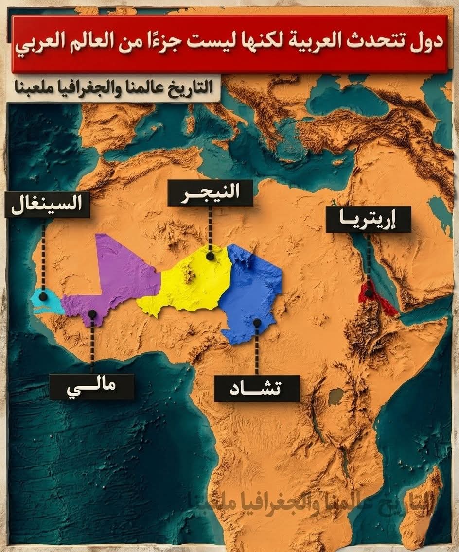 دول تتحدث العربية لكنها ليست في “العالم العربي”قد اعتدنا على ربط اللغة العربية بـ “العالم العربي” بشكل تلقائي، ولكن هل تساءلت يوماً ما إذا كانت هناك دول تتحدث العربية بطلاقة، وتُعد لغتها الرسمية أو الوطنية، ولكنها لا تزال خارج حدود هذا المصطلح السياسي الشائع؟ في هذا المنشور، سنصحبك في جولة عبر خريطة مختلفة تماماً، حيث اللغة العربية تتجاوز الحدود التقليدية بالأرقام والحقائق! السنغال 🇸🇳 لغة العلم والقرآنعلى الرغم من أن الفرنسية هي اللغة الرسمية، إلا أن العربية هي “اللغة الوطنية” ولغة الروح. * يقدر عدد المتقنين للغة العربية بأكثر من 35% من السكان (نحو 6 ملايين نسمة)، وهي اللغة الثانية من حيث الاستخدام في الدوائر الإدارية والتعليمية. * معلومات أساسية: العاصمة: داكار | العملة: فرنك غرب أفريقيا. * الموقع: أقصى غرب القارة السمراء على المحيط الأطلسي. مالي 🇲🇱 إرث المخطوطات العريقتملك مالي تاريخاً طويلاً من التفاعل مع الثقافة العربية، خاصة في مدن مثل تمبكتو. * تحتضن مالي أكثر من 700,000 مخطوطة عربية تاريخية، وتعتبر العربية لغة رسمية مساعدة يستخدمها ملايين السكان في التعليم الإسلامي والتجارة. * معلومات أساسية: العاصمة: باماكو | العملة: فرنك غرب أفريقيا. * الموقع: دولة حبيسة في قلب غرب أفريقيا. النيجر 🇳🇪 جسر التواصل الأفريقيتعتبر اللغة العربية في النيجر قاسمًا مشتركًا بين العديد من المجموعات العرقية. * يتحدث بالعربية قرابة 15% من السكان بطلاقة (أكثر من 3.5 مليون نسمة)، وهي لغة التدريس الأساسية في آلاف المدارس القرآنية هناك. * معلومات أساسية: العاصمة: نيامي | العملة: فرنك غرب أفريقيا. * الموقع: تقع في منطقة الساحل، وتحدها ليبيا والجزائر شمالاً. تشاد 🇹🇩 العربية لغة الدولة الرسميةتتميز تشاد بأن اللغة العربية لغة رسمية للدولة بموجب الدستور إلى جانب الفرنسية. * يتحدث بالعربية (سواء الفصحى أو “العربية التشادية”) أكثر من 60% من السكان، وهي لغة التواصل اليومي الأولى في الأسواق والمؤسسات. * معلومات أساسية: العاصمة: إنجامينا | العملة: فرنك وسط أفريقيا. * الموقع: قلب القارة الأفريقية، ونقطة الوصل بين العرب وأفريقيا الاستوائية. إريتريا 🇪🇷 لغة العمل والسيادةتملك إريتريا تراثاً عربياً غنياً، وتعتبر العربية لغة عمل رسمية ودستورية. * تظهر الإحصاءات أن أكثر من 50% من السكان يتحدثون العربية أو يفهمونها بطلاقة، وهي اللغة الأكثر انتشاراً في الإعلام والبرلمان بجانب “التجرينية”. * معلومات أساسية: العاصمة: أسمرة | العملة: ناكفا. * الموقع: القرن الأفريقي، وتطل على ساحل البحر الأحمر بطول 1200 كم.سؤال لمتابعينا: 💬هل تعتقد أن هذه الدول يجب أن تنضم لجامعة الدول العربية؟ شاركنا برأيك! 👇#التاريخ_عالمنا_والجغرافيا_ملعبنا #لغة_عربية #ثقافة #تاريخ #أفريقيا #عالم_عربي #معلومات #السنغال #مالي #تشاد #النيجر #إريتريا #هل_كنت_تعلم# مجلة ايليت فوتو ارت.