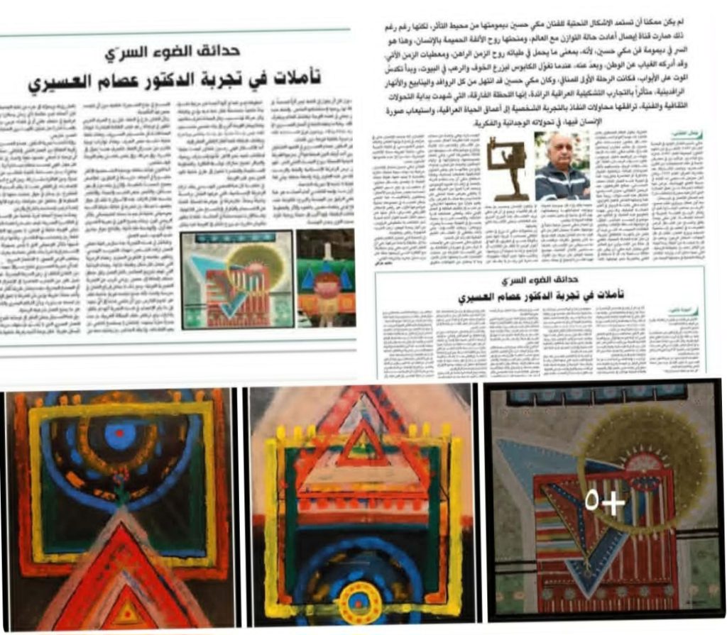 يظهر الدكتور عصام العسيري في المشهد التشكيلي العربي أحد أولئك الذين استطاعوا أن يمزجوا المعرفة الأكاديمية العميقة بروح البحث الفني الحر فهو فنان درس الزخرفة الإسلامية والخط والرسم وامتلك من هذه العلوم رؤية واسعة جعلته يبني لغة تشكيلية لا تشبه إلا تجربته الخاصة إن أول ما يواجه المتلقي أمام أعماله هو هذا التماهي الرقيق بين الهندسة والروح فاللوحة عنده سطح لوني وفضاء معمور بالضوء والأثر والخطوط والعلاقات الدقيقة إنها أقرب إلى مدينة روحية تتولد من صمت اللون وصبر الهندسة.