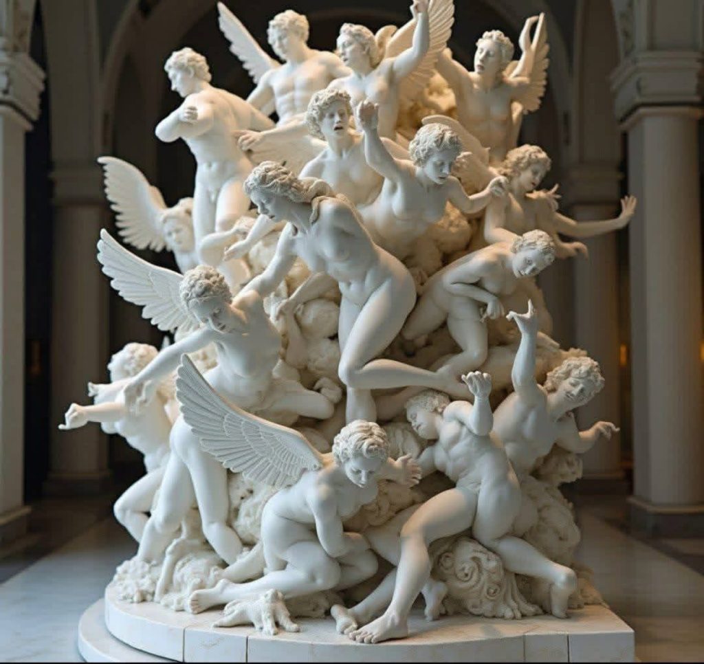 منحوت من كتلة واحدة من الرخام في عام 1740، سقوط الملائكة المتمردين بواسطة النحات الإيطالي أغوستينو فاسولاتو هو عرض خلاب للمهارة الفنية وسرد القصص الدرامية. يلتقط التمثال الهبوط الفوضوي لـ 60 ملاكاً سقطوا، يصورون كربهم وكفاحهم وهم يتعثرون في دوامة من اليأس.