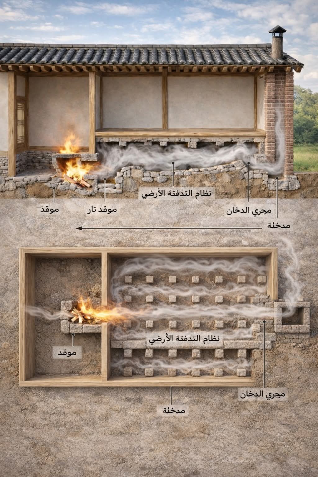 أنظمة التدفئة الحجرية (Masonry Heating Systems): حكمة قديمة لكفاءة طاقة حديثةيوضح المخطط أعلاه نظام تدفئة يعتمد على البناء الحجري، وهو تصميم متجذر في تقاليد البناء منذ مئات السنين، ولا يزال محل إعجاب حتى اليوم لما يتمتع به من كفاءة عالية، وراحة حرارية، واستدامة بيئية.وعلى عكس المواقد التقليدية التي تفقد معظم حرارتها عبر المدخنة، يعمل هذا النظام على التقاط الحرارة وتخزينها ثم إطلاقها تدريجيًا في أرجاء المسكن.قلب النظام: الموقد الحجريفي مركز هذا البناء يوجد صندوق نار حجري تُحرق فيه الأخشاب عند درجات حرارة مرتفعة.يؤدي هذا الاحتراق المكثف إلى إنتاج حرارة قوية باستخدام كمية قليلة من الوقود، كما يقلل من الدخان وانبعاث الجسيمات الضارة.غالبًا ما يُوضع الموقد في المطبخ أو غرفة المعيشة الرئيسية، مما يسمح باستخدامه للتدفئة والطهي في آنٍ واحد.توجيه الدخان وتدفق الحرارةبدلًا من خروج الغازات الساخنة مباشرة إلى الأعلى، يتم توجيهها عبر قنوات أفقية معقدة مبنية من الحجر والأرض المضغوطة.هذا المسار المتشعب يُجبر الدخان على قطع مسافة طويلة قبل وصوله إلى المدخنة، وخلال هذه الرحلة تنتقل الحرارة إلى الكتل الحجرية المحيطة.تساعد الدعامات الداخلية والأعمدة الحجرية الصغيرة على توزيع تدفق الهواء بشكل متوازن، كما تزيد من مساحة التبادل الحراري.ويضمن صمام مانع للارتداد استمرار حركة الدخان في الاتجاه الصحيح ومنع عودته إلى داخل مساحة المعيشة.الكتلة الحرارية: تخزين الحرارة لساعات طويلةتكمن القوة الحقيقية لهذا النظام في الكتلة الحرارية.إذ تقوم الأحجار السميكة والأرض والبناء الحجري بامتصاص الحرارة الناتجة عن الاحتراق.وحتى بعد انطفاء النار، تستمر هذه المواد في إطلاق الدفء ببطء لساعات طويلة—وأحيانًا ليوم كامل—مما يوفر حرارة ثابتة ومشعة دون تقلبات حادة في درجة الحرارة.هذا النوع من التدفئة مريح جدًا، لأنه يدفئ الجدران والأرضيات والأشخاص مباشرة بدلًا من تسخين الهواء فقط.المدخنة وتجميع الرمادفي نهاية النظام، يخرج الدخان المبرد عبر مدخنة منخفضة أسفل مستوى السقف، مما يساعد على تحسين التحكم في السحب الهوائي.كما توجد حفرة مخصصة لتجميع الرماد تسهّل عمليات الصيانة والتنظيف، وتحافظ على كفاءة النظام وسلامته على المدى الطويل.مزايا أنظمة التدفئة الحجريةتقدم هذه الأنظمة العديد من الفوائد المهمة، من أبرزها:كفاءة عالية في استهلاك الوقود: تستهلك خشبًا أقل بكثير من المواقد المفتوحة.حرارة تدوم طويلًا: يتم تخزين الحرارة وإطلاقها تدريجيًا.انبعاثات منخفضة: احتراق أنظف يقلل التأثير البيئي.متانة عالية: مبنية من مواد طبيعية يمكن أن تدوم لأجيال.راحة حرارية ممتازة: حرارة مشعة متوازنة وطبيعية.حل مستدام خالد عبر الزمنيعكس هذا الأسلوب في التدفئة فهمًا عميقًا لقوانين الفيزياء وخصائص المواد وراحة الإنسان.ومن خلال الدمج بين التحكم في تدفق الهواء والكتلة الحرارية، توفر أنظمة التدفئة الحجرية حلًا أنيقًا وبسيطًا لتحديات الطاقة الحديثة.ومع تزايد الاهتمام بالمساكن المستدامة والقادرة على الصمود، تعود هذه التصاميم القديمة لتجد مكانها من جديد في العمارة المعاصرة.#farmlife #natualbeauty # مجلة ايليت فوتو ارت