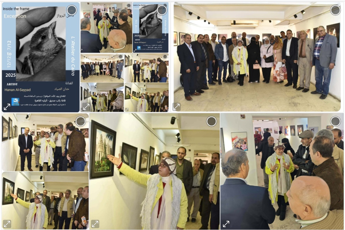 فى السابع من ديسمبر 2025 السابعة والنصف مساءاً بقاعة راتب صديق .بأتيلية 2 شارع كريم الدولة – متفرع من شارع محمود بسيونى – ميدان طلعت حرب – القاهرة – بالتحرير – تم إفتتاح معرض ( داخل البرواز ) للفنانة الفوتوتوغرافية التشكيلية حنان حسين الصياد