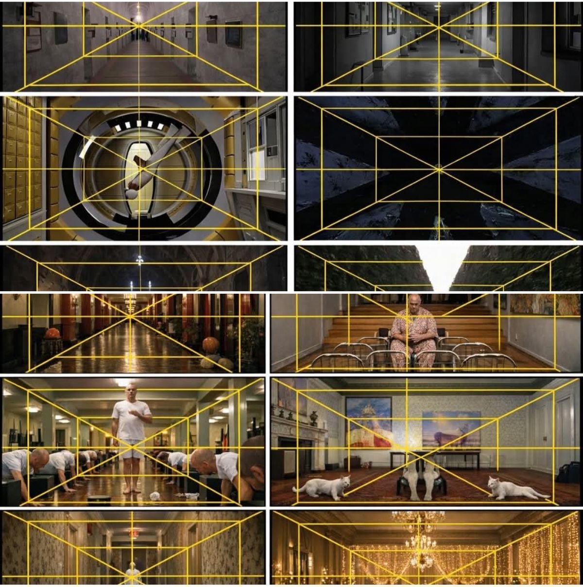 كل الخطوط البيضاء في الصور تتجه نحو نقطة واحدة في منتصف الكادر.