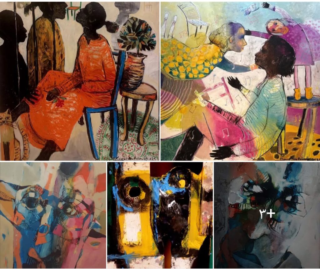 . تجربته تميل أكثر إلى البعد الإنساني العام، والاهتمام بـ الشكل، الجسد، والتكوين، مع نزعة تجريدية/تعبيرية تبحث في الحالة الشعورية والوجودية بعيدًا عن الخطاب السياسي أو الرمزي المباشر.