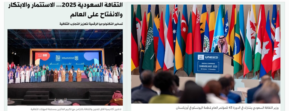 وفي 4 أكتوبر 2025، شاركت السعودية ممثلة وزارة الثقافة في الدورة الـ43 للمؤتمر العام لمنظمة الأمم المتحدة للتربية والعلم والثقافة (يونيسكو)، في مدينة سمرقند بأوزبكستان.