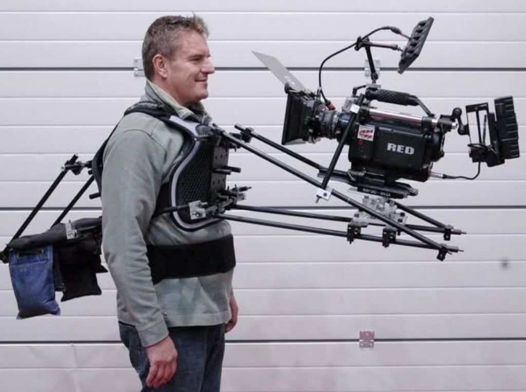 🎬🎥 نظام دعم كاميرا احترافي يُستخدم عادةً في تصوير الأفلام والإعلانات، خاصة عند استعمال كاميرات ثقيلة مثل كاميرات RED