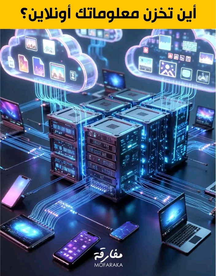 أين تخزن معلوماتك اولاين من رسائل وملفات؟ فأين ذهبت هذه المعلومات؟ تقنية الحفظ هذه تسمى بالتخزين السحابي _لا يعني الغيوم، بل يعني آلاف الحواسيب العملاقة المسماة مراكز البيانات، عندما تحفظ صورة أو ملفاً يُقسَّم فوراً إلى أجزاء صغيرة جداً، وكل جزء يُشفَّر لحمايته ثم يُرسل عبر الإنترنت إلى خوادم موزعة في أماكن مختلفة حول العالم، هذه الخوادم لا تكتفي بالحفظ فقط بل تنشئ نسخاً متعددة من نفس البيانات، بحيث إذا تعطل خادم في دولة ما تبقى معلوماتك آمنة في دولة أخرى، وعندما تطلب الملف مرة أخرى لا يُعاد كما هو، بل تُجمع أجزاؤه بسرعة مذهلة في أجزاء من الثانية وتُفك الشيفرة ليظهر لك وكأنه لم يغادر جهازك أبداً، والأذكى من ذلك أن الأنظمة السحابية تراقب استخدامك، فإذا كنت تفتح ملفاً كثيراً تُخزّنه في خوادم أقرب إليك لتسريعه، وإذا ندر استخدامه يُنقل تلقائياً إلى خوادم أبعد وأرخص، هكذا تتحول المعلومات من مجرد أرقام إلى كيان حي ينتقل ويُنسخ ويُحمى دون أن تشعر.