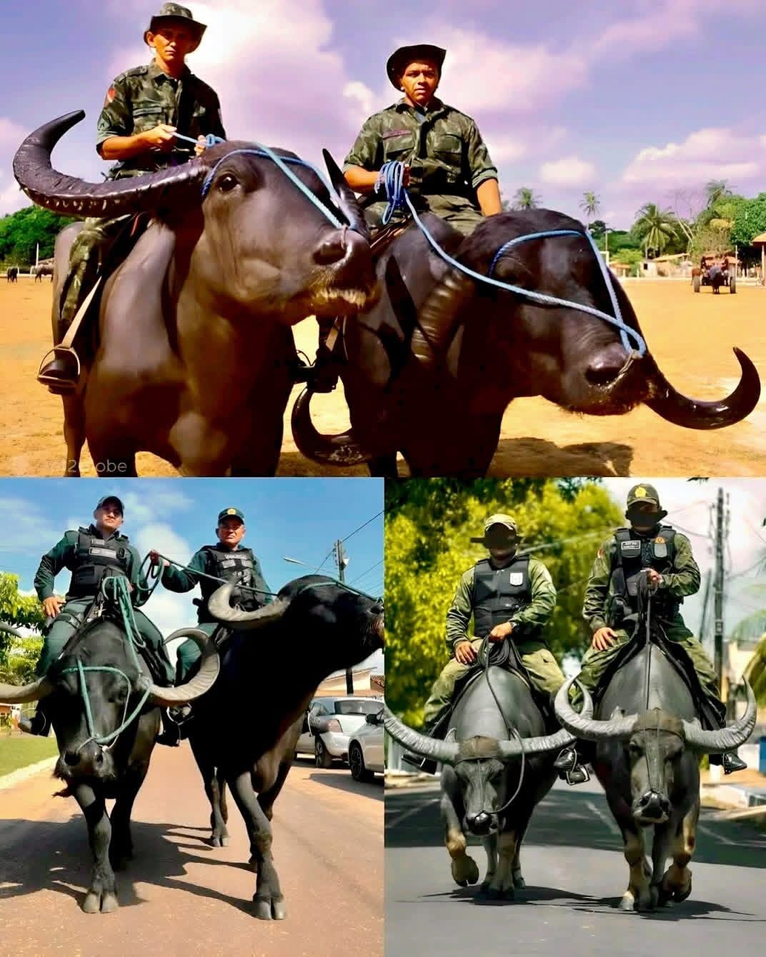 وسط هذا التحدي القاسي، وجدت شرطة ماراجو العسكرية حلًا غير متوقّع… حلًا يبدو وكأنه خرج من زمن آخر: دوريات على ظهور الجاموس المائي.