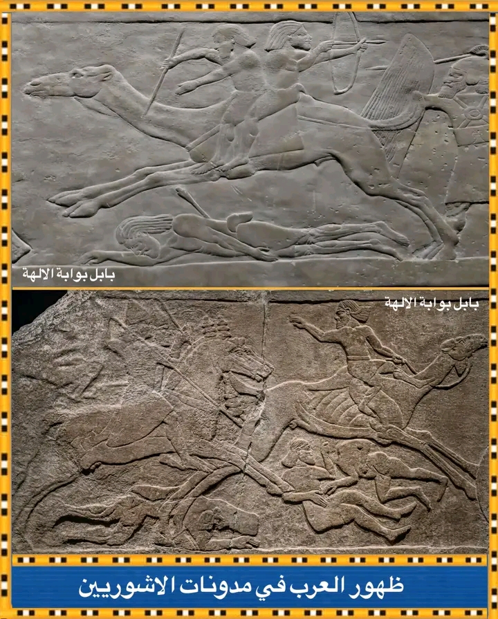 ظهور العرب في مدونات الآشوريين•••••••••••••••••••••••••••••كان العرب يشكلون احدى القوى الفاعلة في الجبهة الغربية من الامبراطورية الآشورية المترامية الاطراف، فقد ورد اسم العرب لأول مرة في احدى حوليات الملك شلمنصر الثالث عند وصفه انتصاره في معركة قرقور ضد تحالف من امراء بلاد الشام و(جندبو) العربي في العام 853 قبل الميلاد.وذكر الملك آشور بانيبال في حولياته:“ان احد الملوك العرب من اتباعه انضم الى الانباط وهم العرب الذين يسيطرون على الطرق التجارية الواقعة في الغرب، فكان انضمامه اليهم ضد رغبة الملك”.فانطلق آشور بانيبال مخترقاً الصحراء جاعلاً دمشق قاعدة له، وانقض على القبائل التي واجهها وانتصر عليهم، وغنم اعداداً كبيرة من الجمال، وجاء بها الى بلاد آشور.وحصل العمال والصنّاع والعبيد على هدايا من الجمال، وقد أطلق سكان بلاد الرافدين على الجمل تسمية “حمار الجنوب” وهذا هو سر ظهور الجِمال في المنحوتات والجداريات الفنية الآشورية.••••••••••••••••••••••••••••••••••المصدر: تاريخ الفن في بلاد الرافدين _ زهير صاحب/ الجزء الثالث،،#بابل بوابة الالهة#مجلة ايليت فوتو ارت..