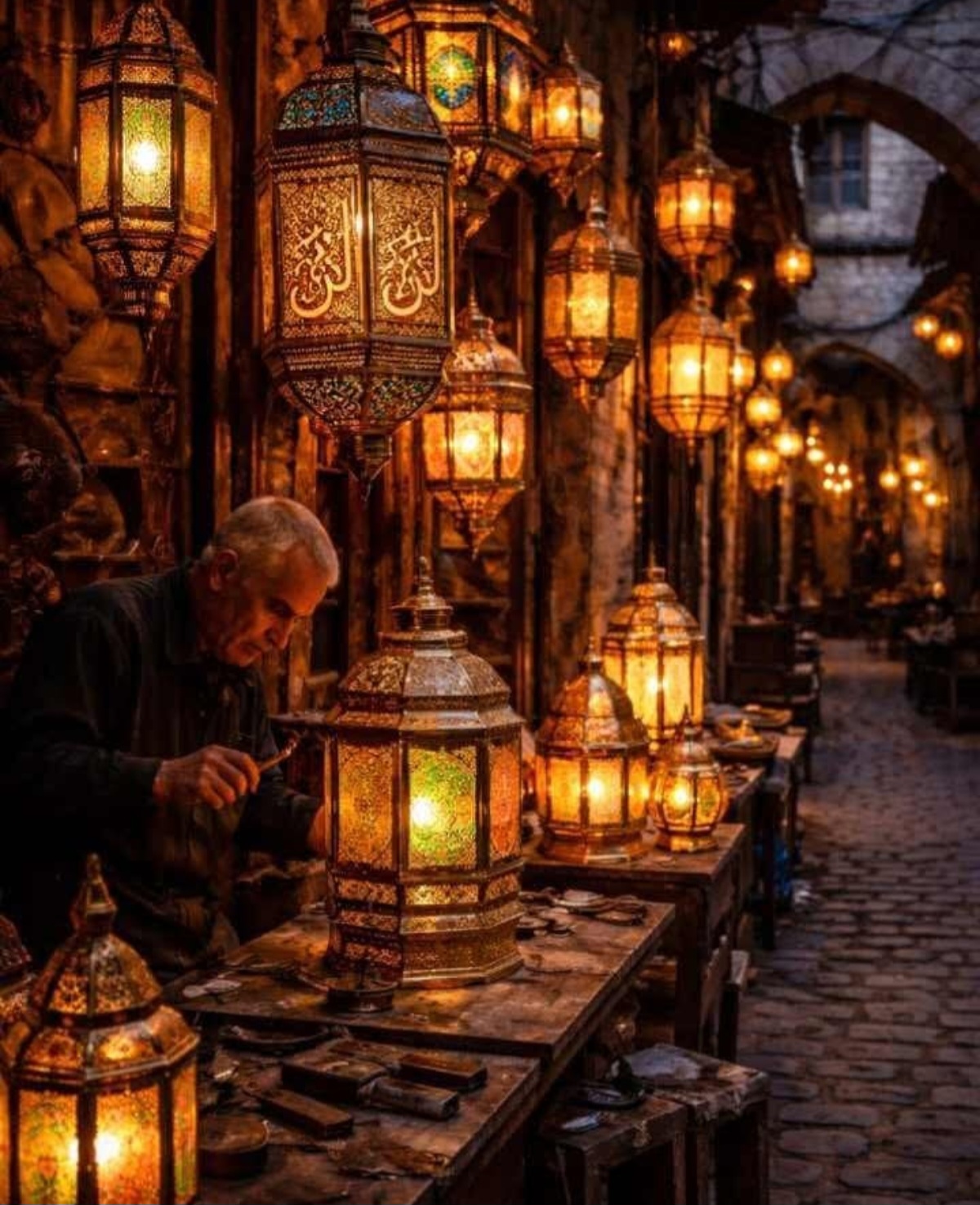 ومنذ تلك اللحظة، لم يعد الفانوس مجرد معدنٍ يُشكّل، بل تحوّل إلى مرآة تعكس روح دمشق. فالحرفي الدمشقي لم يتعامل مع النحاس كخامٍ جامد، بل كمساحةٍ مفتوحة للبوح، ينقش عليها ذاكرة المدينة، ويُفرغ فيها صبرًا طويلًا، فتخرج القطعة وكأنها كُتبت بالإيقاع ذاته الذي يُطرق به النحاس.